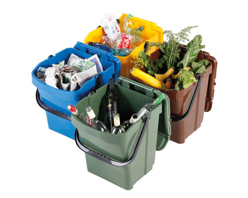 - Proste pojemniki stosowane do segregacji odpadów w biurach, szkołach, szpitalach i domach.